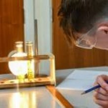 On Monday, Upper Sixth students conducted an experiment to investigate the effect of light intensity on photosynthesis. In a darkened room, an LED bulb was placed at different distances from a test tube filled with water and pondweed. Also in the test tube was sodium hydrogen carbonate which supplies carbon dioxide for the pondweed to photosynthesize, producing bubbles of oxygen.