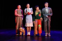 The supporting cast was equally strong, with several standout performances. Ivy, as Glinda the Good Witch, brought sparkle and grace to the role, exuding warmth and wisdom. Emilia’s portrayal of the Wicked Witch was outstanding and suitably menacing; her characterisation was fabulous, and she delivered a memorable performance that commanded attention every time she appeared on stage. Joana, as Aunty Em, gave a poignant and heartfelt performance, particularly in her scenes with Dorothy. The fabulous Optimistic Voices—Isabella and Leila—popped up in many scenes, bringing a ‘50s movie star quality with their Big Band microphone, leading many of the songs from their position downstage right. The ensemble’s contributions were also notable, with the Munchkins, the citizens of Oz, and the brilliant dancers providing delightful support in many scenes, helping to create the vibrant world Dorothy navigates on her journey to and from Oz.
